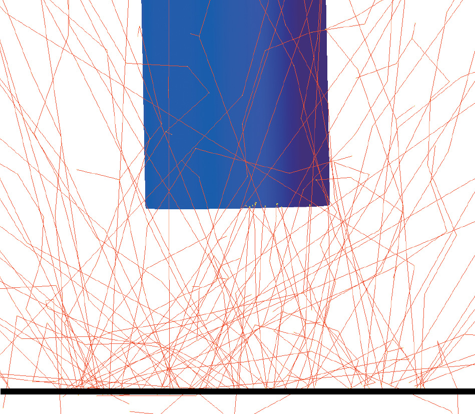 Геометрия моделируемой сцены и визуализация траекторий электронов в процессе симуляции представлены на рис. 3.