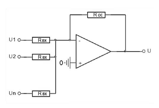 Рис. 4. Аналоговый сумматор на операционном усилителе.