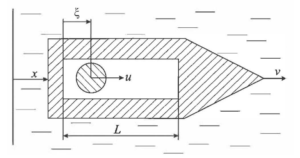 Обозначим через силу, с которой корпус действует на внутреннюю массу, а через силу сопротивления среды, действующую на корпус и пропорциональную квадрату его скорости . Предполагается, что, кроме сил и , нет других сил, действующих на систему. Уравнения движения системы имеют вид: