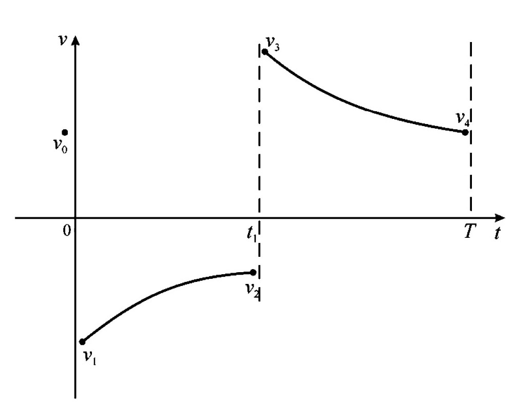 Ниже будет построено решение, при котором скорость изменяется по схеме, изображенной на рис. 3, при этом