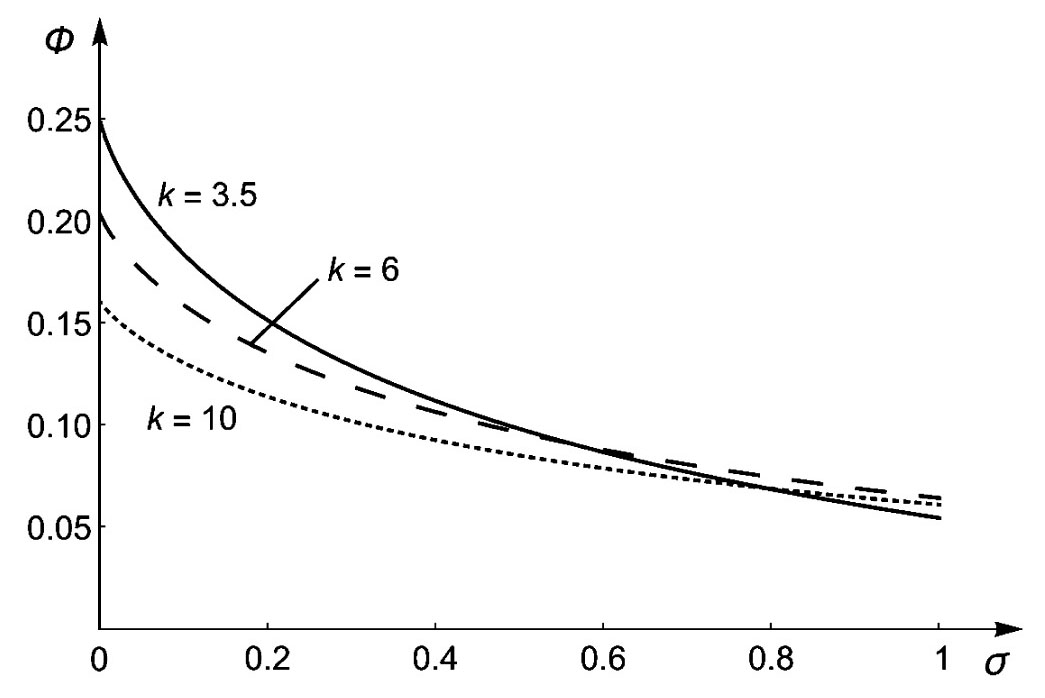Рис. 4. Зависимость Φ от параметра σ при k=3,5.