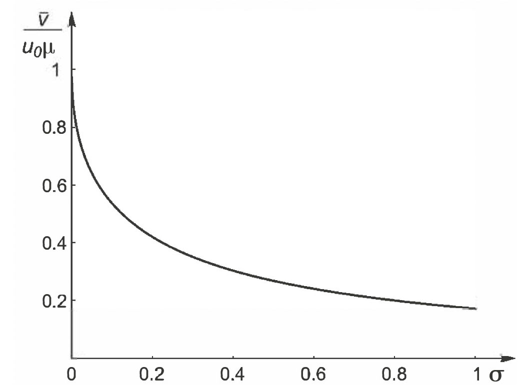 Рис. 7. Зависимость нормированной максимальной скорости от параметра σ при μ ≪1.