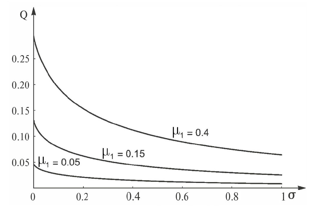 Рис. 8. Зависимость величины Q от параметра σ.