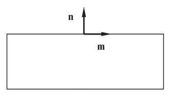 Рис. 2. Полуплоскость; n – единичная нормаль к границе плоскости, m – единичный касательный вектор