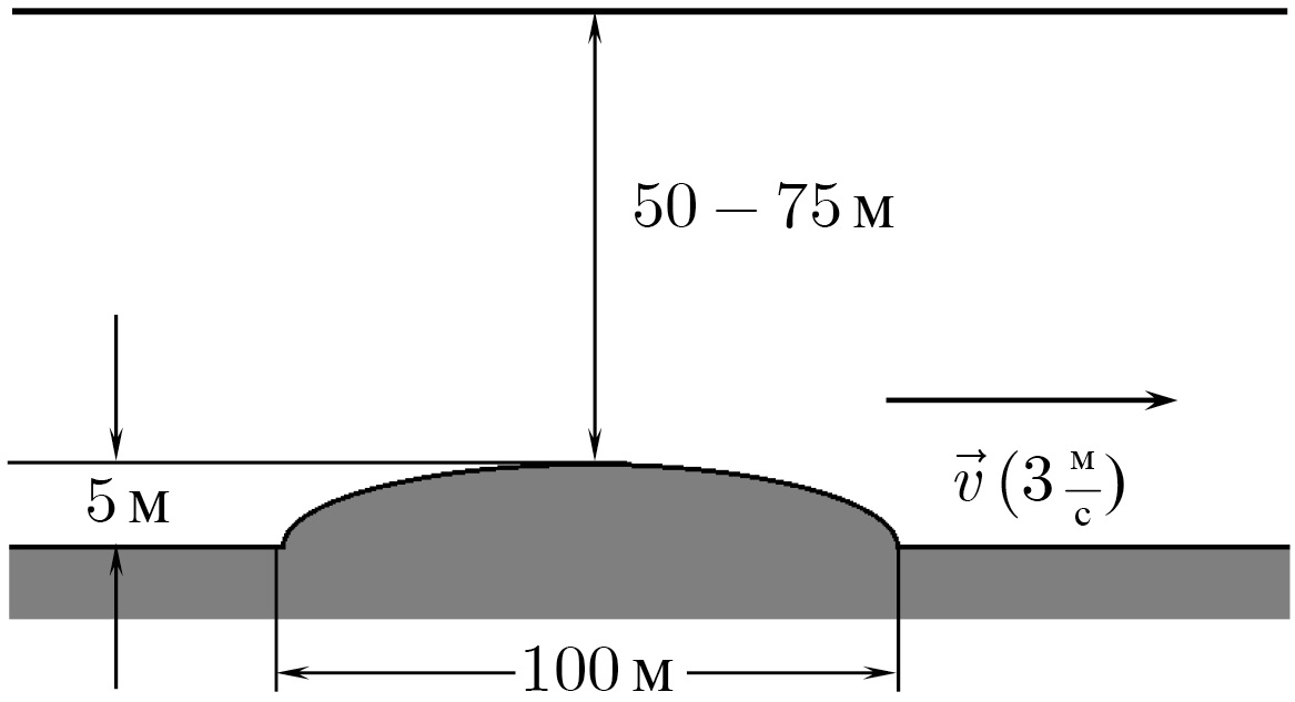 Расчеты приводят к результатам, отраженным на рис. 6, из которого видно, что возмущение скорости локализовано строго над началом препятствия, а зона существенного возмущения скорости имеет небольшую протяженность примерно 10 м.