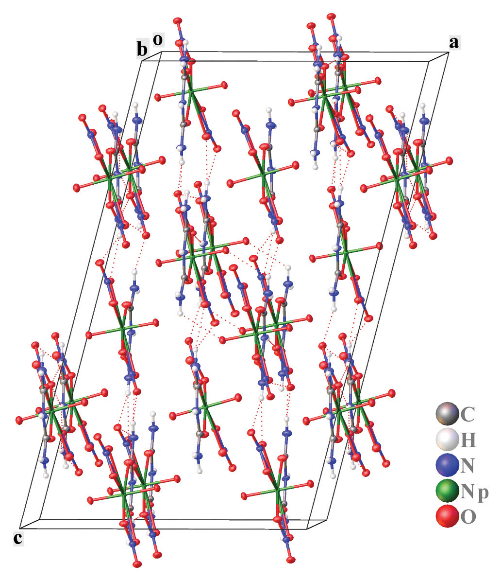 Таким образом, изучено строение двух новых комплексных нитратов шестивалентного Np [(NpO2)(biuret)(NO3)2] (I) и [H2(Ph-terpy)(NO3)]2 [NpO2(NO3)4] (II). В комплексе I электронейтральный О-донорный лиганд биурет входит в координационное окружение атома Np, в комплексе II N-донорный лиганд участвует в образовании комплексного катиона [H2(Ph-terpy)(NO3)]+.