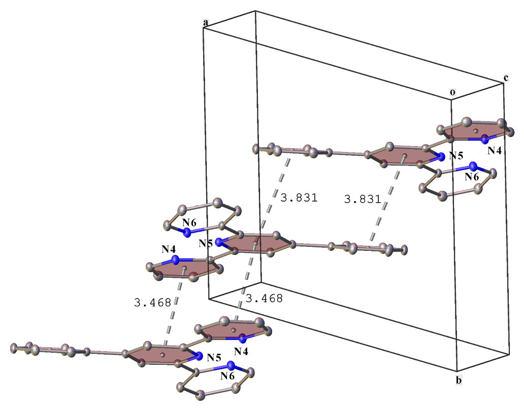 Рис. 5. π-π-Взаимодействие между катионами [H2Ph-terpy]2+ в структуре II. Атомы водорода не показаны.