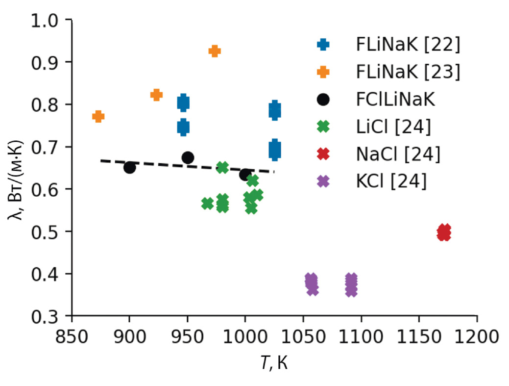 - Tkachev N. Three compositions of high-entropy melts of lithium, sodium and potassium fluorides and chlorides as promising coolants for molten salt reactors // ChemRXiv. 2024. https://doi.org/10.26434/chemrxiv-2024-b6j96