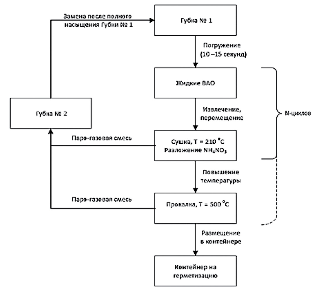Рис. 2. Схема отверждения реэкстракта 137Cs с использованием блоков «Губка».