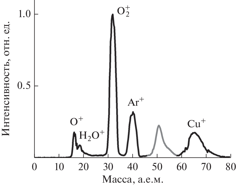 high-current pulsed magnetron discharge with a hot target in an Ar/O_2 gas mixture. The mechanism for the formation of accelerated O^+ ions may be the conversion of accelerated ones in the cathode layer of negative ions O^– → O^+ in the processes of charge exchange or ionization by electron impact.