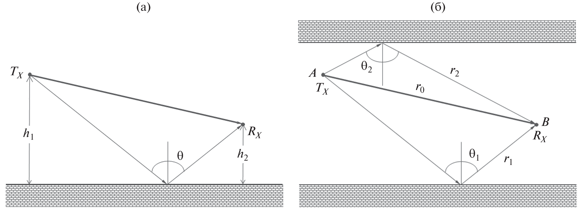 Для исследования распространения сверхширокополосной волны внутри помещений предложена модель с парными отражениями от поверхностей, расположенных друг против друга. Показано, что в отличие от открытой местности многолучевая среда помещений по характеру затухания волны с расстоянием близка к свободному пространству. Благодаря этому энергетический резерв сверхширокополосной линии связи в помещении должен быть выше, чем на открытой местности.