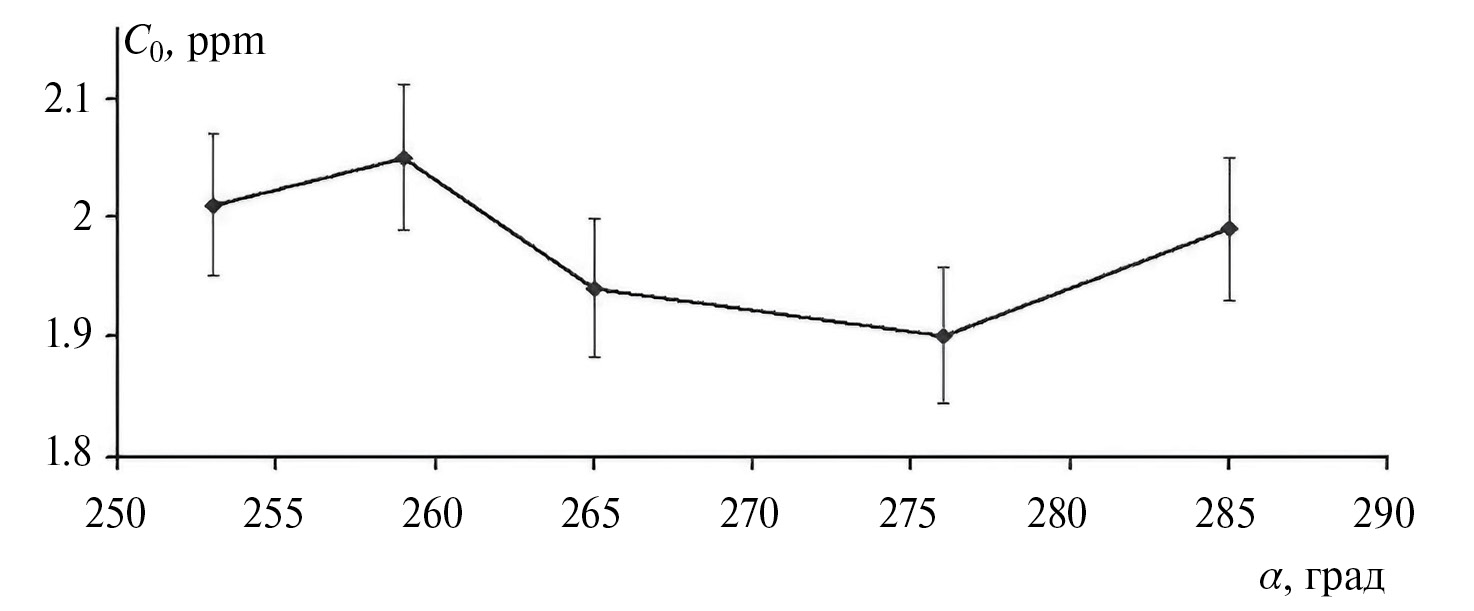 Рис. 4. Зависимость фоновой концентрации метана в приземном слое атмосферы от азимутального угла наблюдения α.