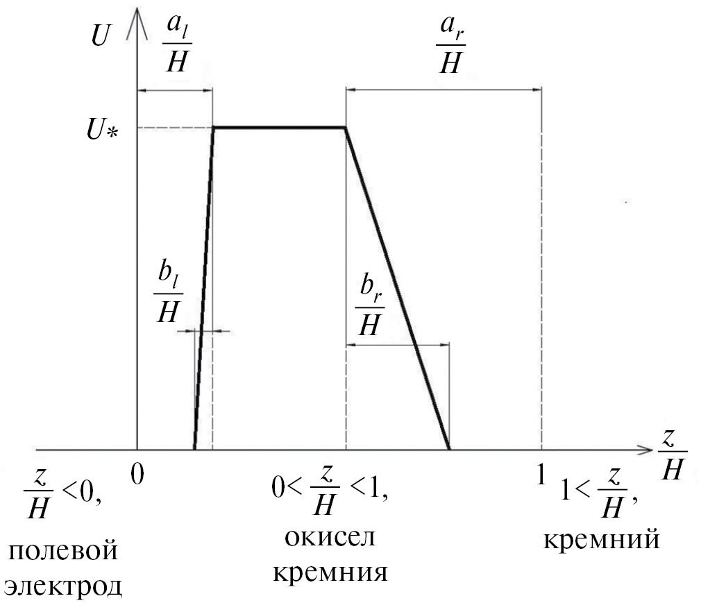 Для формирования модели профиля изолирующего потенциала будем использовать трапецеидальную форму зависимости от координат: