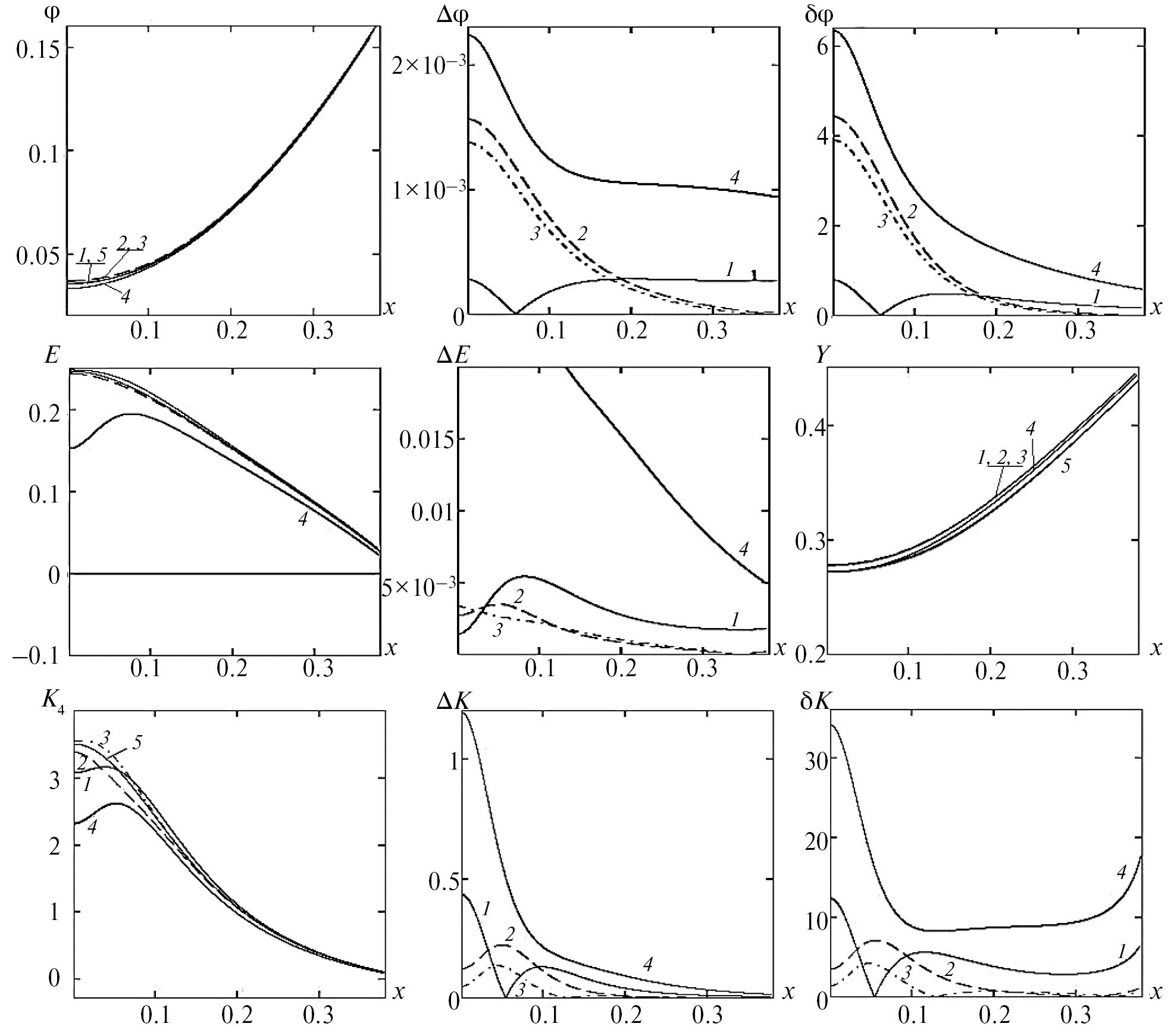 Видно, что во всех случаях уже первое приближение геометризованной теории имеет бòльшую точность, чем параксиальный подход, высшие приближения улучшают результат, а переход от к существенно снижает уровень ошибки. Использование в качестве функций , также приводит к повышению точности, но не столь значительному, как в табл. 2: