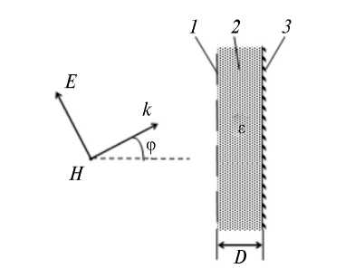 На рис. 4 показана металлическая пластина, на которую под большим углом φ падает плоская волна TM-поляризации. Уровень обратного рассеяния от этой пластины связан с интенсивностью полей и токов на пластине. Эта интенсивность, а следовательно, и уровень обратного рассеяния могут быть снижены либо путем поглощения токов, либо путем уменьшения их возбуждения. Так, возбуждение токов на пластине может быть уменьшено путем устранения или ослабления одного из основных факторов, формирующих эти токи, — отраженной плоской TM-волны. Эффективным инструментом подавления отраженной плоской волны TM-поляризации является РПП на основе структуры ИМП, замечательной особенностью которого является расширение полосы поглощения при увеличении угла падения.