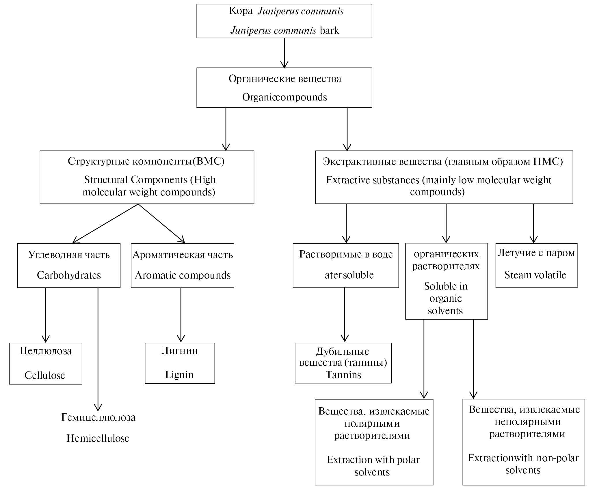 Рис. 1. Схема анализа коры Juniperus communis.