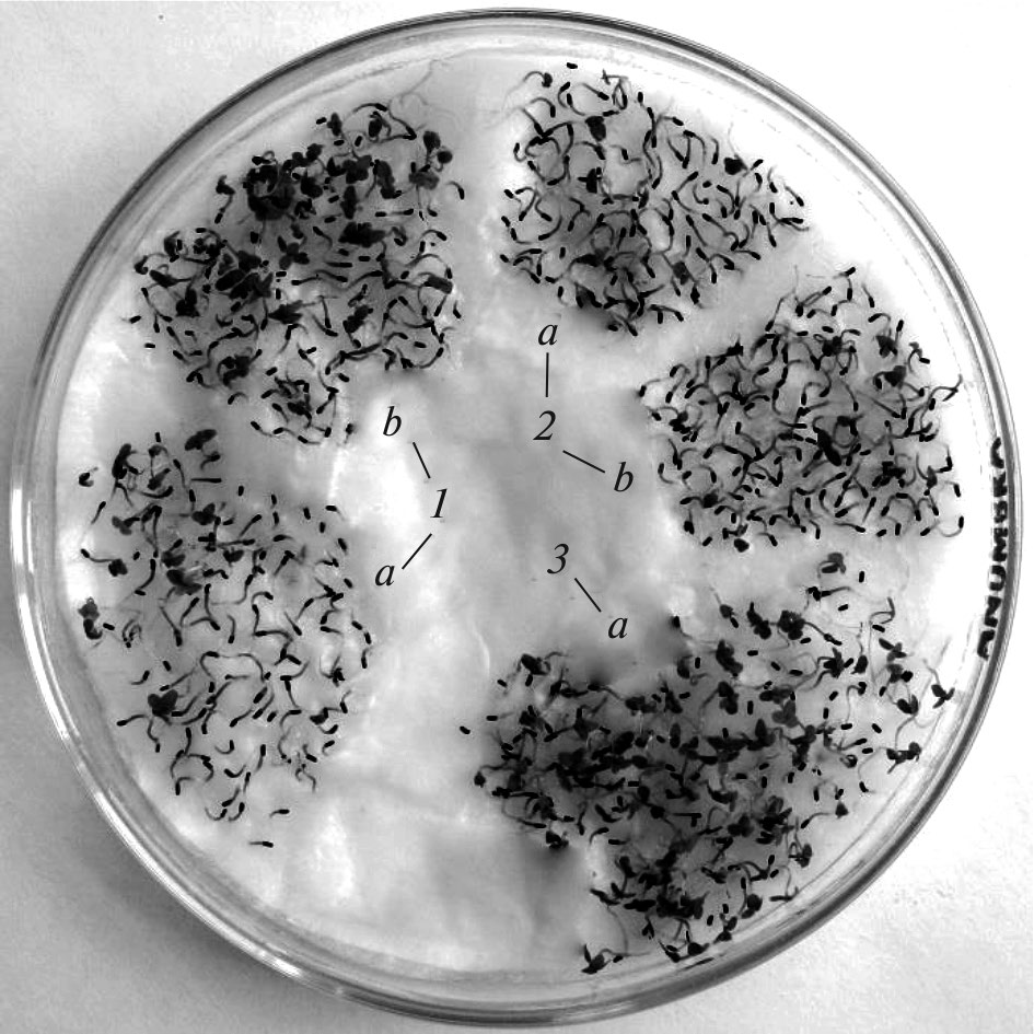 После 9 лет хранения семена H. hirsutum при всех температурных вариантах хранения показали всхожесть на уровне исходной, но скорость прорастания семян, хранившихся при −20 и −196 °С была в 1.4 раза ниже, чем семян, хранившихся при 5 °С. Наблюдая дальнейшее развитие проростков, мы обнаружили, что из семян, хранившихся в ЖА, после проклевывания корня развивается только 9% проростков, из семян хранившихся при −20 °С — 4% проростков, из семян хранившихся при 5 °С — 33% от общего количества, составляющего 200 шт. Так как в данном случае мы увлажняли семена через 1—2 часа после отбора с хранения, а относительная влажность воздуха в лаборатории была низкой (30%), мы предположили, что низкая скорость прорастания и малое количество нормально развивающихся проростков связаны с повреждением мембран в клетках меристем зародышевого корня и эпикотиля из-за большого градиента влажности, возникающего, как известно [21], при увлажнении сухих семян водой.