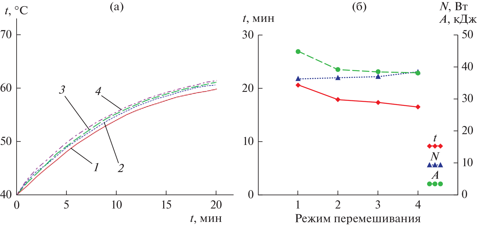 Mixing is one of the most common processes in various branches of the chemical industry: food, construction, oil refining, pharmaceuticals, and others. Increasing the intensity of mixing can be achieved by changing the speed or direction of movement of the impeller, which is confirmed by studies of domestic and foreign authors. In this paper, a planetary drive of a stirred tank is considered, which makes it possible to implement various types of uneven movement of the impeller. The advantages of the proposed mechanism over existing analogues are compactness, reliability, and ease of setting the coefficient of uneven rotation of the agitator. On the basis of the IKA laboratory reactor, an experimental setup is constructed, with the help of which comparative tests of the heat-transfer intensity in a traditional mixing device with a constant rotational speed and using the proposed planetary mechanism are carried out. As a result of the experiment, it is found that the transmission to the impeller of uneven movement can reduce the mixing time, as well as increase the energy efficiency of the apparatus.
