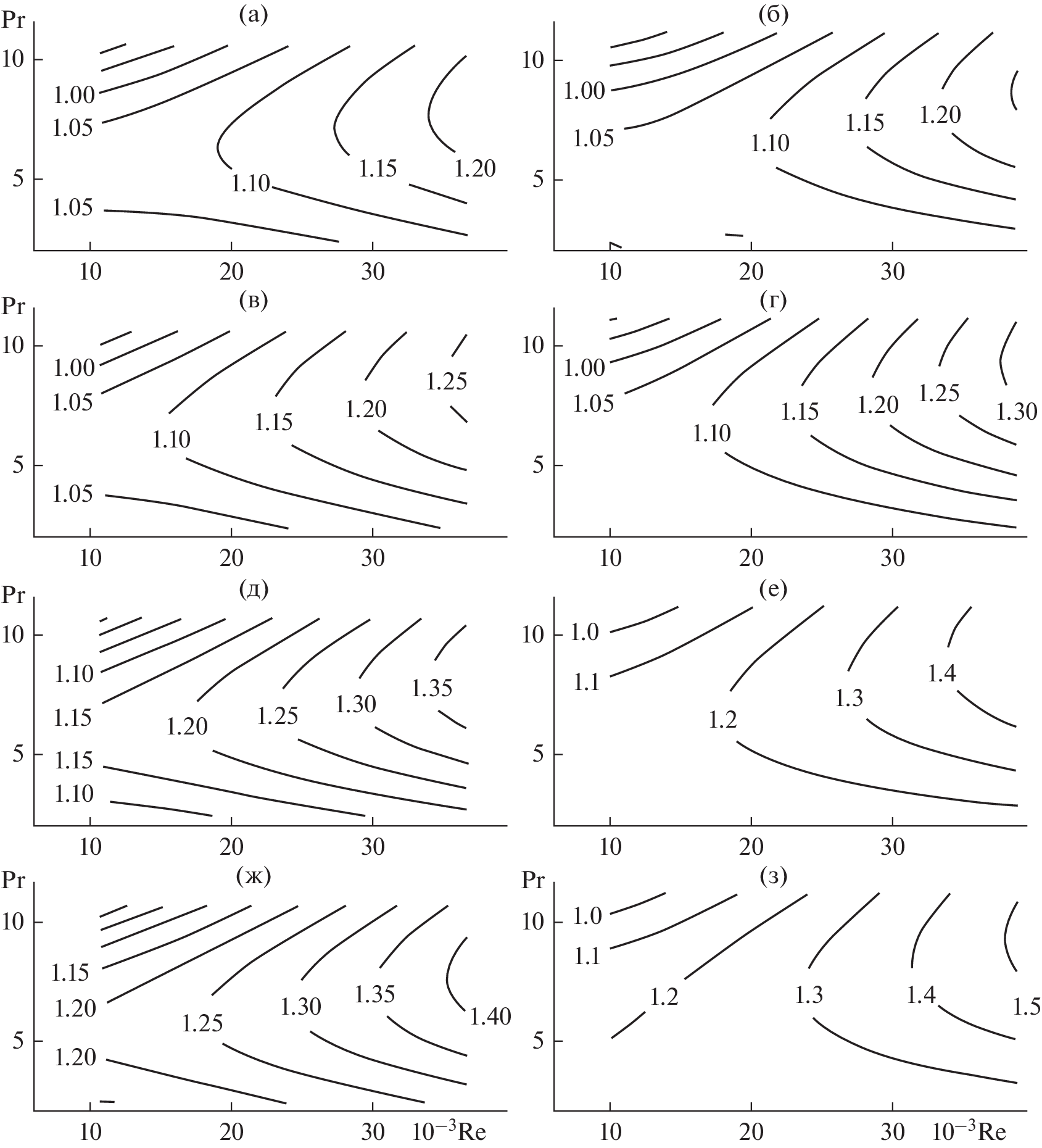 The results of thermal engineering experiments on a water–water tubular heat exchanger of the tube-in-tube type with heat transfer intensified by periodic confuser–diffuser elements arranged along the channel length at a step equal to the doubled inner diameter of the inner tube are compared with the results of experiments on a similar smooth-tube heat exchanger and the results of calculations by the criterial models of B.S. Petukhov, S.S. Kutateladze, W. Nusselt, and M.A. Mikheev. The comparison showed that the ratio of heat transfers in the tube channels of the intensified and smooth-tube heat exchangers, being a function of the Reynolds and Prandtl numbers, depends on the latter to a much higher extent. As a consequence, at least for water as a medium where the Prandtl number depends on temperature, the intensification of heat transfer is determined not only by the profiling parameters, but also by the parameters of the heat transfer process itself. In addition, the comparison demonstrated that the replacement of experimental data on smooth-tube heat exchangers by the results of calculation by the criterial models worsens the accuracy of estimates and leads to an increase in deviations with an increase in the Reynolds number Re.