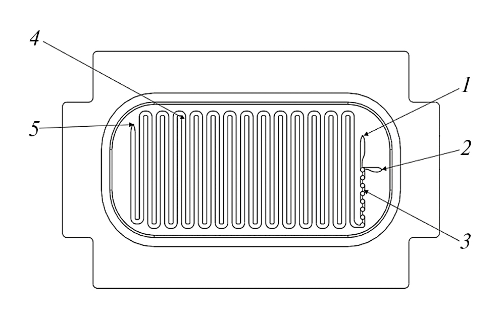 - змеевидный канал длиной 1624 мм и шириной 2 мм (с поперечной длиной канала 52 мм);