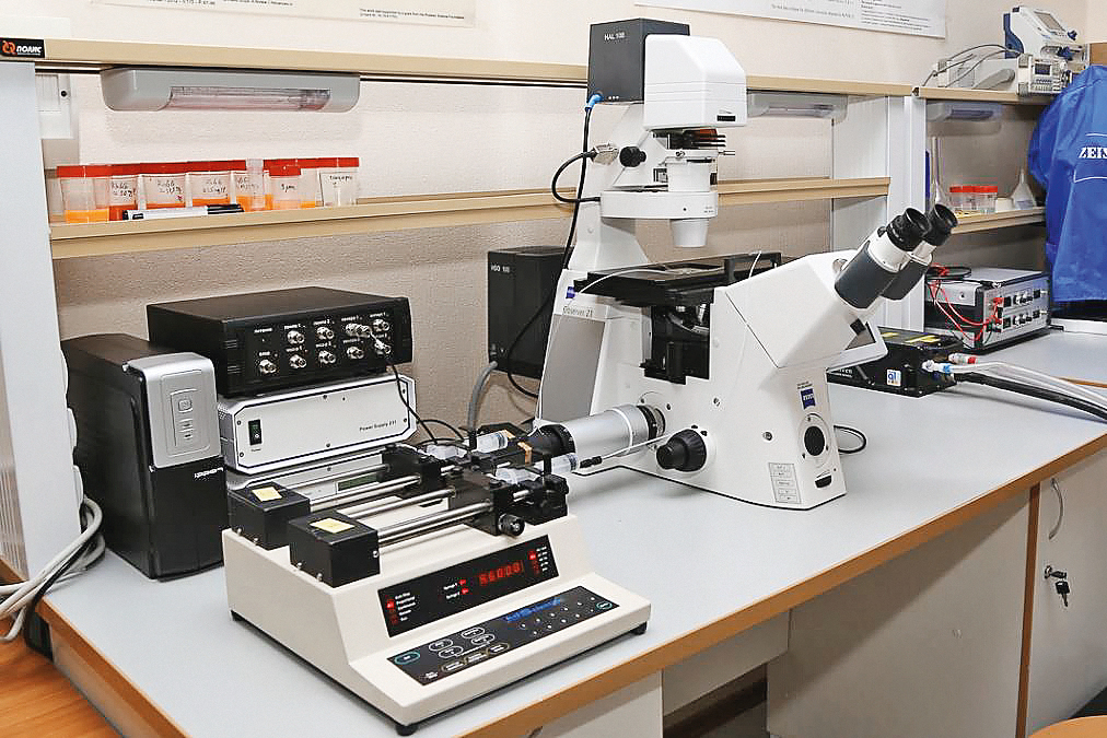 Методы micro-PIV и micro-PTV реализованы на экспериментальном стенде с целью исследования гидродинамики и массообмена в однофазных и двухфазных течениях в микроканальных устройствах в составе измерительного комплекса “ПОЛИС” (разработка Института теплофизики СО РАН). Поток засеивается флуоресцентными трассерами средним диаметром от 1 до 3 мкм и освещается двойным импульсным Nd:YAG лазером с энергией в импульсе до 70 мДж и частотой повторения импульсов до 15 Гц. Свет лазера заводится в микроскоп через оптическое волокно. Для регистрации света, излученного частицами, без отраженного каналом света используется дихроичное зеркало. Кросскорреляционная цифровая камера с разрешением 2048 × 2048 пикселей регистрирует изображения, которые затем передаются в персональный компьютер для дальнейшей обработки. Синхронизация работы системы осуществляется при помощи программируемого процессора. Управление экспериментом и обработка данных осуществляется с использованием пакета программного обеспечения ActualFlow. Данное программное обеспечение предназначено для управления измерительным комплексом и совмещает в себе функции автоматизации процесса проведения эксперимента, обработки и визуализации данных, организации управления и хранения полученных данных на физическом носителе [16].