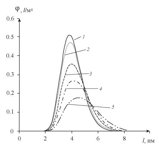 Пусть N – число кристаллитов платины с размерами от l до l+dl, тогда φ(t, x, l) – плотность функции распределения частиц платины по размерам: