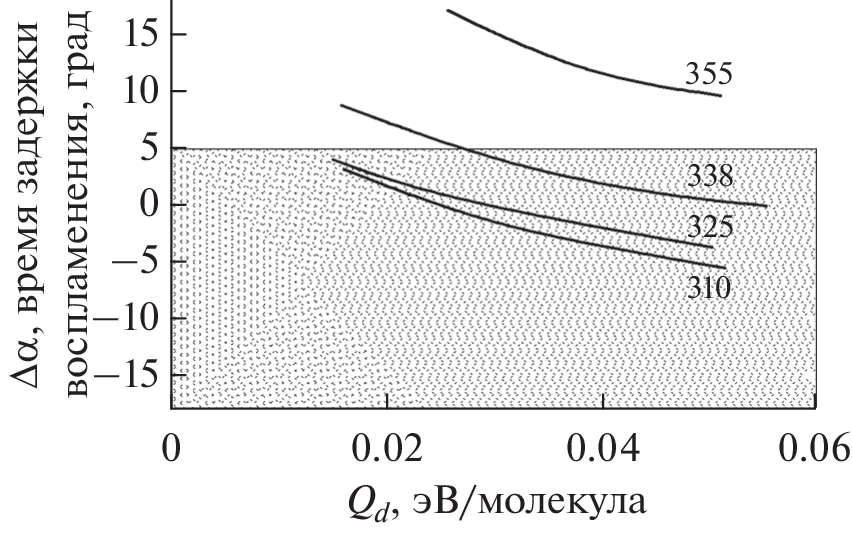 В работе приведены зависимости момента воспламенения активированной разрядом зоны и момента возникновения самовоспламенения топливной смеси в области перед фронтом волны горения от двух параметров: угла поворота коленвала, при котором инициировался разряд, и удельного энерговклада в стримерный канал. Показано, что для более точного определения оптимальных пределов воспламенения активированной зоны и возникновения самовоспламенения необходимо учитывать изменение давления в цилиндре за счет движения поршня. При моделировании принималось во внимание неоднородное образование химически активных частиц, связанное со стримерным, многоимпульсным характером разряда.