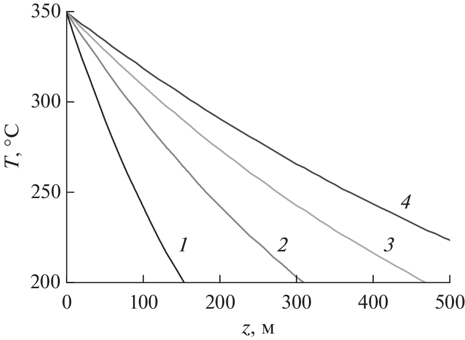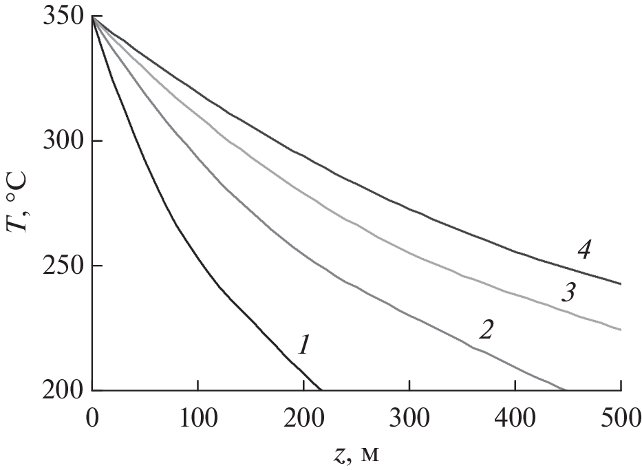 Исследуются температурные потери по колонне скважины для случая нагнетания сухого пара с целью выяснения возможности его доставки до забоя без конденсации. Принимается, что в горной породе температура растет с увеличением глубины согласно геотермальному градиенту, расход пара постоянен, пар в устье имеет высокую температуру и является сухим, не содержащим капелек воды. По пути к забою снижается температура пара, но не достигает еще точки насыщения. Потери тепла в горную породу вычисляются по общепринятой формуле. Определяется положение точки начала конденсации пара в скважине. Расчеты проводятся для наиболее вероятных на промыслах расходов 25, 50, 75 и 100 т/сут. Теплоемкость сухого пара считается постоянной, что приемлемо лишь для низких значений давлений, до 3–4 МПа. В этом случае предлагается формула для распределения температуры пара по колонне и задача решается аналитически. Однако при повышенных давлениях приходится учитывать термическую зависимость теплоемкости пара и применять численный метод для нахождения температурного распределения. На основании рассчитанных вариантов делается вывод о возможности подачи количества теплоты фазового перехода в резервуар в полном объеме. Если залежь высокопроницаемая и залегает близко к поверхности, то можно надеяться на доставку теплоты фазового перехода в пласт полностью. При глубинах залегания более 500 м пар полностью конденсируется в колонне. Теплота фазового перехода поступает в горную породу.
