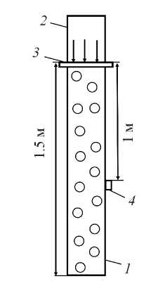 Рис. 1. Схема «ударной трубы»: 1 – рабочий участок (КНД), 2 – камера высокого давления, 3 – диафрагма, 4 – датчик.