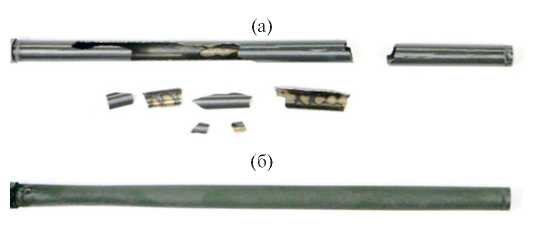 12. Fig. 11. Comparison of the appearance of uncoated (a) and chromium-coated (b) Zircaloy-4 alloy specimens after steam oxidation at 1200 °C for 6000 s [50]: (a) – weight gain 40.4 mg/ms 2 , (b) –11.4.