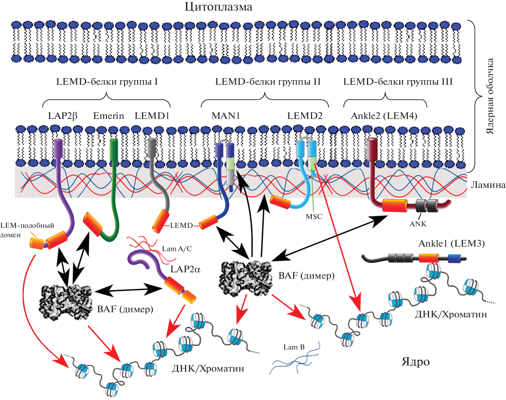 - Snyers L., Erhart R., Laffer S., Pusch O., Weipoltshammer K., Schöfer C. 2018. LEM4/ANKLE-2 deficiency impairs post-mitotic re-localization of BAF, LAP2α and LaminA to the nucleus, causes nuclear envelope instability in telophase and leads to hyperploidy in HeLa cells. Eur. J. Cell Biol. V. 97. P. 63. https://doi.org/10.1016/j.ejcb.2017.12.001