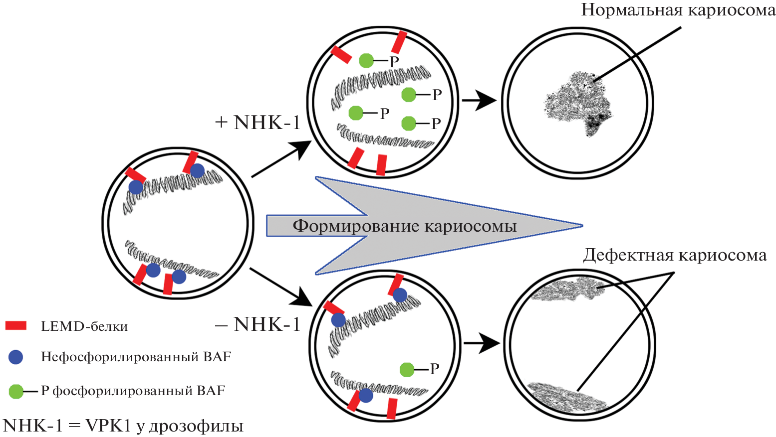 - Lancaster O.M., Cullen C.F., Ohkura H. 2007. NHK-1 phosphorylates BAF to allow karyosome formation in the Drosophila oocyte nucleus. J. Cell Biol. V. 179. P. 817. https://doi.org/10.1083/jcb.200706067
