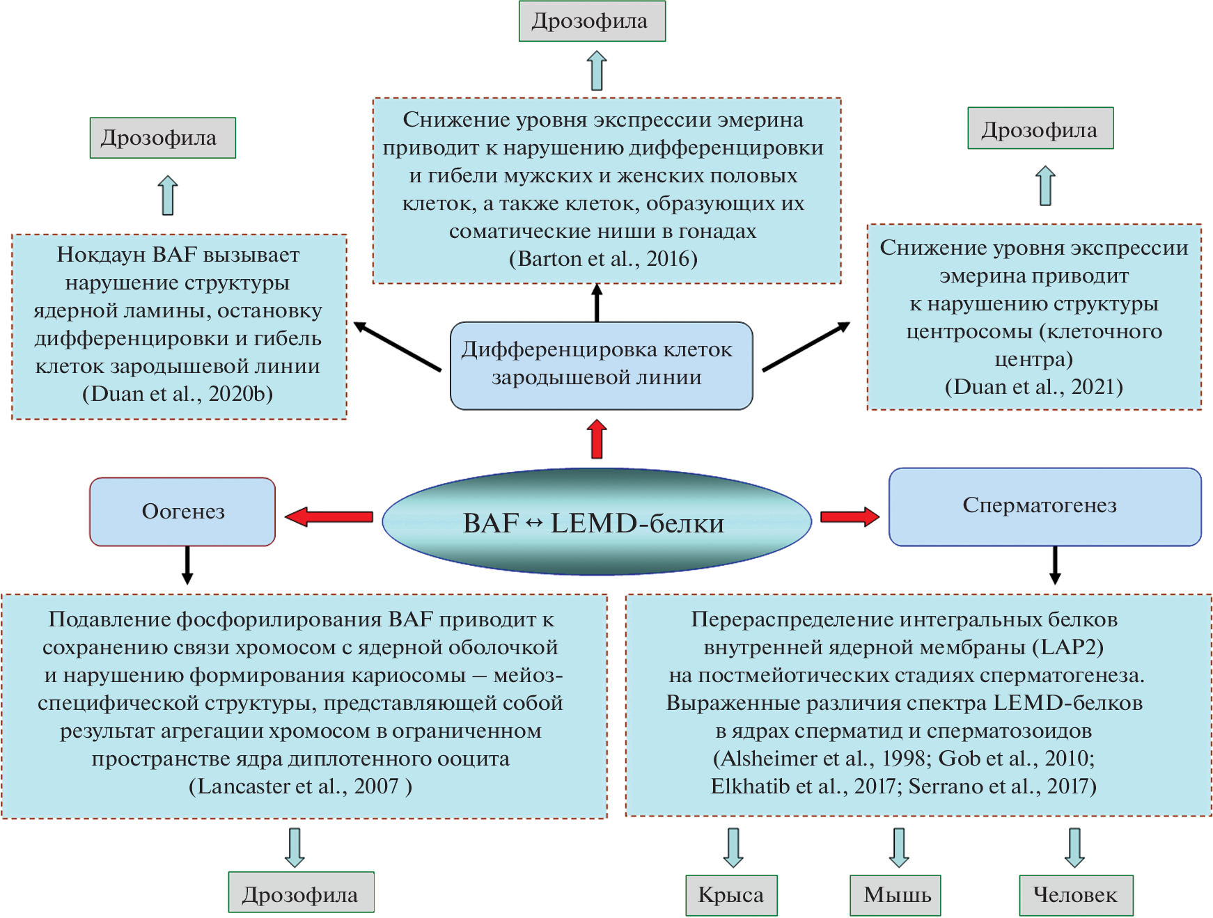 - Barton L.J., Lovander K.E., Pinto B.S., Geyer P.K. 2016. Drosophila male and female germline stem cell niches require the nuclear lamina protein Otefin. Dev. Biol. V. 415. P. 75. https://doi.org/10.1016/j.ydbio.2016.05.001