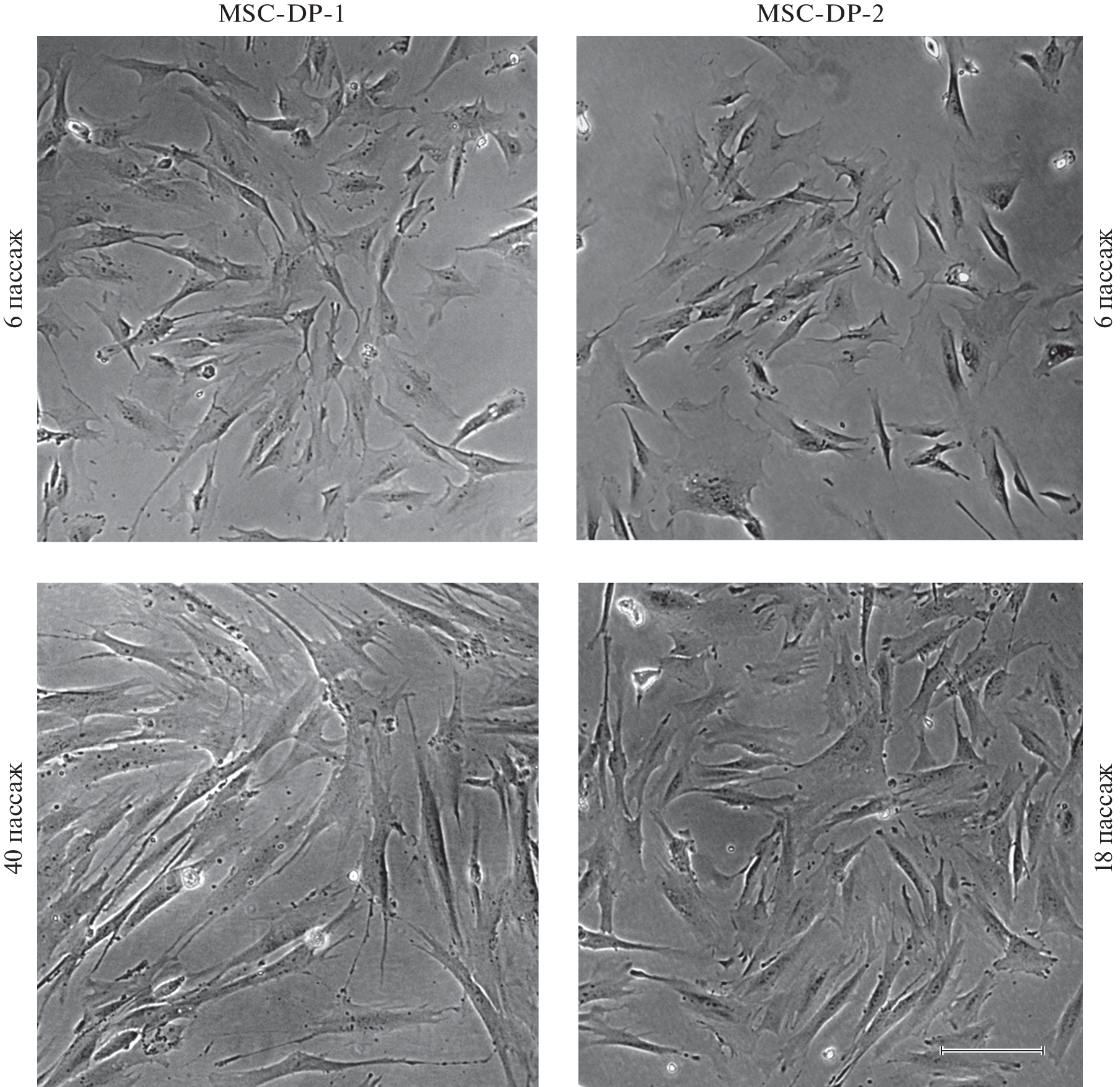 Two new non-immortalized fibroblast-like cell lines isolated from the pulp of Deciduous Tooth of Children of Different Sexes, named MSC-DP-1 and MSC-DP-2, were derived and characterized. In order to confirm the status of mesenchymal stem cells, a comparative analysis of a some characteristics in these lines was carried out at early and late passages. In the process of long-term cultivation, significant interline differences were revealed in the nature of replicative senescence (RS) and in growth characteristics. The MSC-DP-1 line was characterized by a later entry into the active stage of RS and more active proliferation compared to the MSC-DP-2 line. Karyotypic analysis showed that both lines have a normal human diploid karyotype at early passages. At the late (18th passage), in the stage of active PS, the MSC-DP-2 line also has a normal karyotype. And the MSC-DP-1 line, which enters the active stage of RS much later (at passage 42), has an abnormal karyotype with a large number of clonal chromosomal rearrangements. Both lines showed a high proportion of cells carrying antigens characteristic of human MSCs: CD44, CD73, CD90, CD105, HLA-ABC, and a low frequency of cells with CD34, CD45, and HLA-DR antigens. The cells of the derived lines at an early passage have the ability to differentiate in adipogenic, osteogenic and chondrogenic directions. But the MSC-DP-2 line shows weaker differentiation in the adipogenic direction, than the MSC-DP-1 line. In the process of RS, a significant weakening of adipogenic differentiation takes place in the MSC-DP-1 line, and it disappears in the MSC-DP-2 line. The activity of other differentiations does not change during RS. In general, the derived results confirm the status of MSCs for the derived lines and indicate interline differences in the RS process. However, the derived differences between these lines, as well as the comparison with the previously derived line MSC-DP do not indicate their gender nature. Apparently, they are associated with the genetic characteristics of different donors.