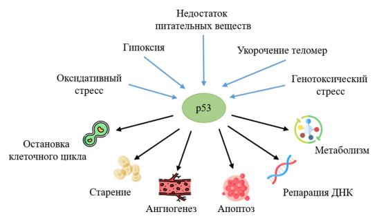 Белок р53 представляет собой важный компонент клеточной регуляции и обеспечения альтруистического поведения клеток многоклеточных организмов, включая человека. Вариабельность посттрансляционных модификаций р53 обеспечивает тонкую настройку и быстрый отклик на меняющиеся условия. В свою очередь, исследование механизмов регуляции р53 позволяет не только углубить понимание фундаментальных механизмов клеточных процессов, но и предложить новые прикладные подходы к точечному вмешательству в эти процессы.