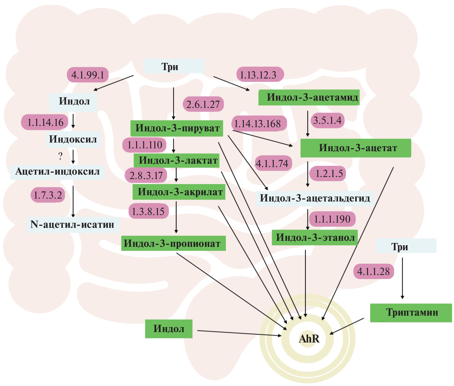 - Hendrikx T., Schnabl B. Indoles: metabolites produced by intestinal bacteria capable of controlling liver disease manifestation // J. Int. Med. 2019. V. 286. P. 32–40. https://doi.org/10.1111/joim.12892