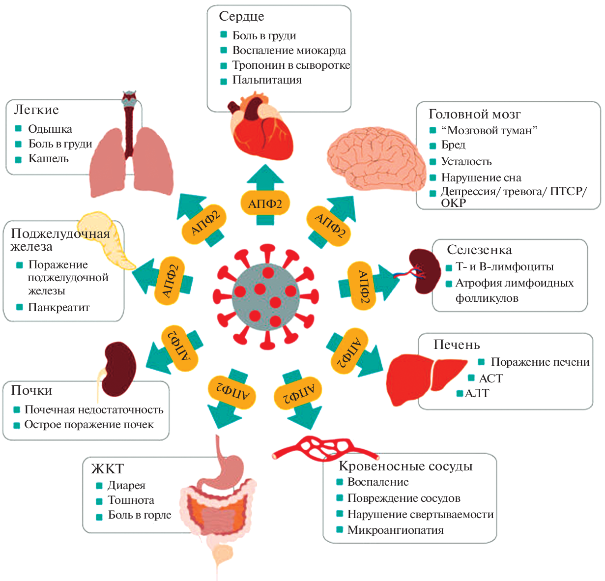 - Silva Andrade B., Siqueira S., Soares W.R.A. et al. Long-COVID and post-COVID health complications: an up-to-date review on clinical conditions and their possible molecular mechanisms // Viruses. 2021. V. 13. № 4. P. 700–710.