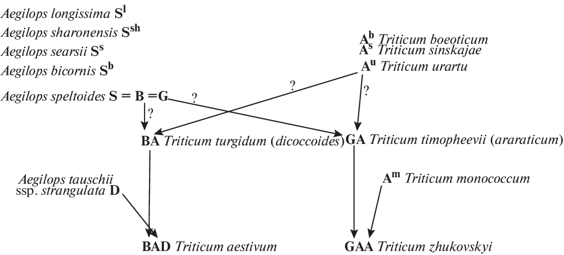 - Riley R., Unrau J., Chapman V. Evidence on the origin of the B genome of wheat // Heredity. 1958. V. 49. P. 91–98.