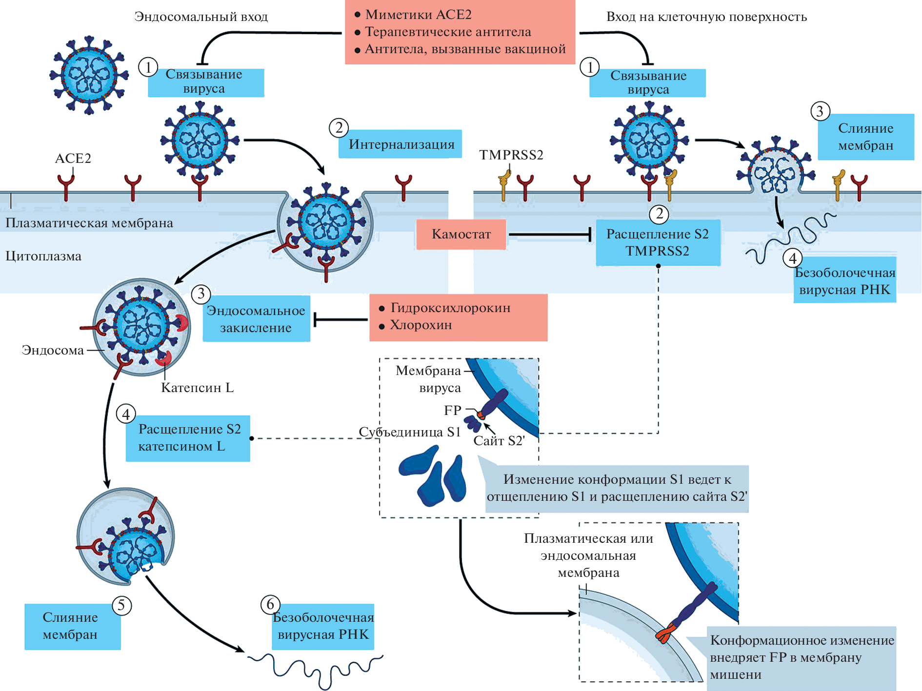 - Jackson C.B., Farzan M., Chen B., Choe H. Mechanisms of SARS-CoV-2 entry into cells // Nat. Rev. Mol. Cell Biol. 2022. V. 23 (1). P. 3–20. https://doi.org/10.1038/s41580-021-00418-x