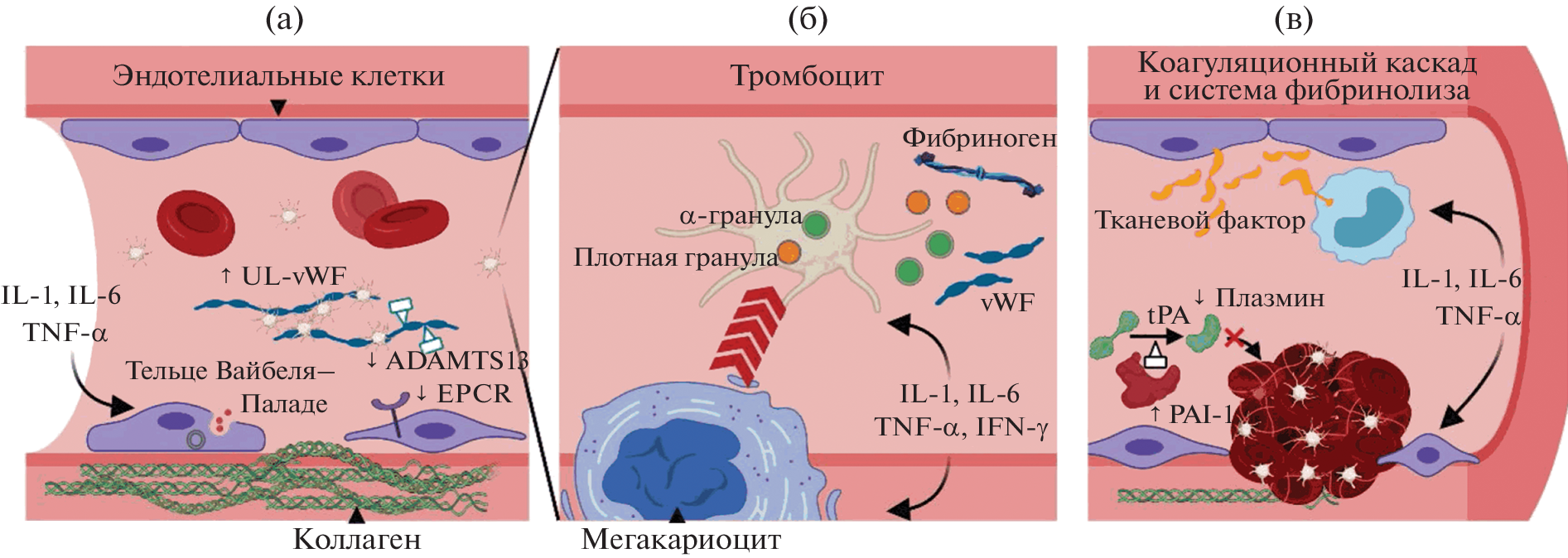 - Gu S.X., Tyagi T., Jain K. et al. Thrombocytopathy and endotheliopathy: crucial contributors to COVID-19 thromboinflammation // Nat. Rev. Cardiol. 2021. V. 18 (3). P. 194–209. https://doi.org/10.1038/s41569-020-00469-1
