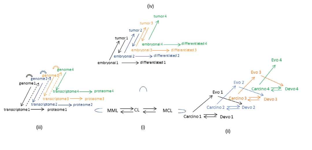 Диаграмма (ii) — это диаграмма carcino-evo-devo, описывающая взаимодействия между неопластическим (Carcino), эволюционным (Evo), и индивидуальным (Devo) типами развития (по: Kozlov, 2019, с изменениями).