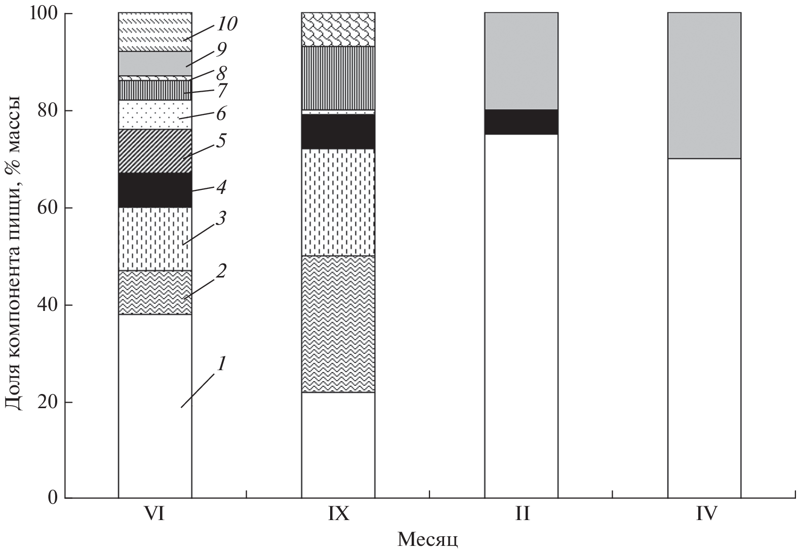 Изучено питание девятииглой колюшки Pungitius pungitius двух водоёмов северо-запада России – субарктического озера Кривое (Карелия) и эстуария реки Нева (Ленинградская область). Личинки двукрылых – хирономид (Chironomidae), мокрецов (Ceratopogonidae), симулид (Simuliidae) и лимониид (Limoniidae), а также планктонные ракообразные составляли основу пищевого комка рыб, их соотношение по численности и массе различалось между изученными водоёмами. Выявлена сезонная смена доминирующих групп пищевых организмов колюшки оз. Кривое. Кроме беспозвоночных и икры рыб, которые были основой питания колюшки в зимний период, летом в её питании присутствовали водные мхи, нитчатые и диатомовые водоросли. Анализ изотопного состава азота в мышцах колюшки, окуня и в беспозвоночных выявил, что в трофической сети оз. Кривое колюшка располагается в пределах третьего трофического уровня, приближаясь по величинам δ15N (5.2–8.6‰) к хищным рыбам. Особенностью питания P. pungitius является переход от разнообразного рациона в летне-осенний период к монотрофному животному питанию (личиками хирономид и икрой рыб) в подлёдный зимне-весенний период.