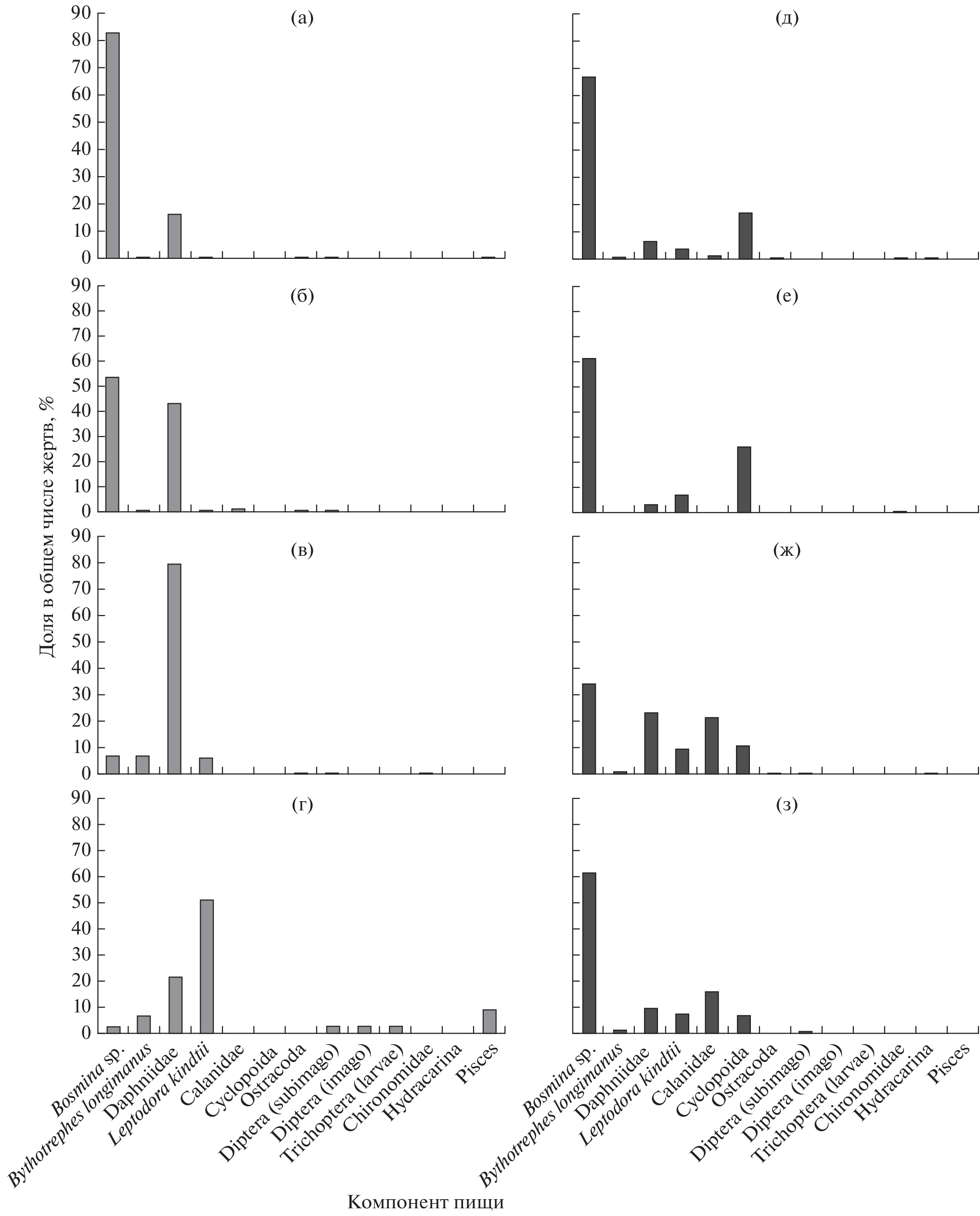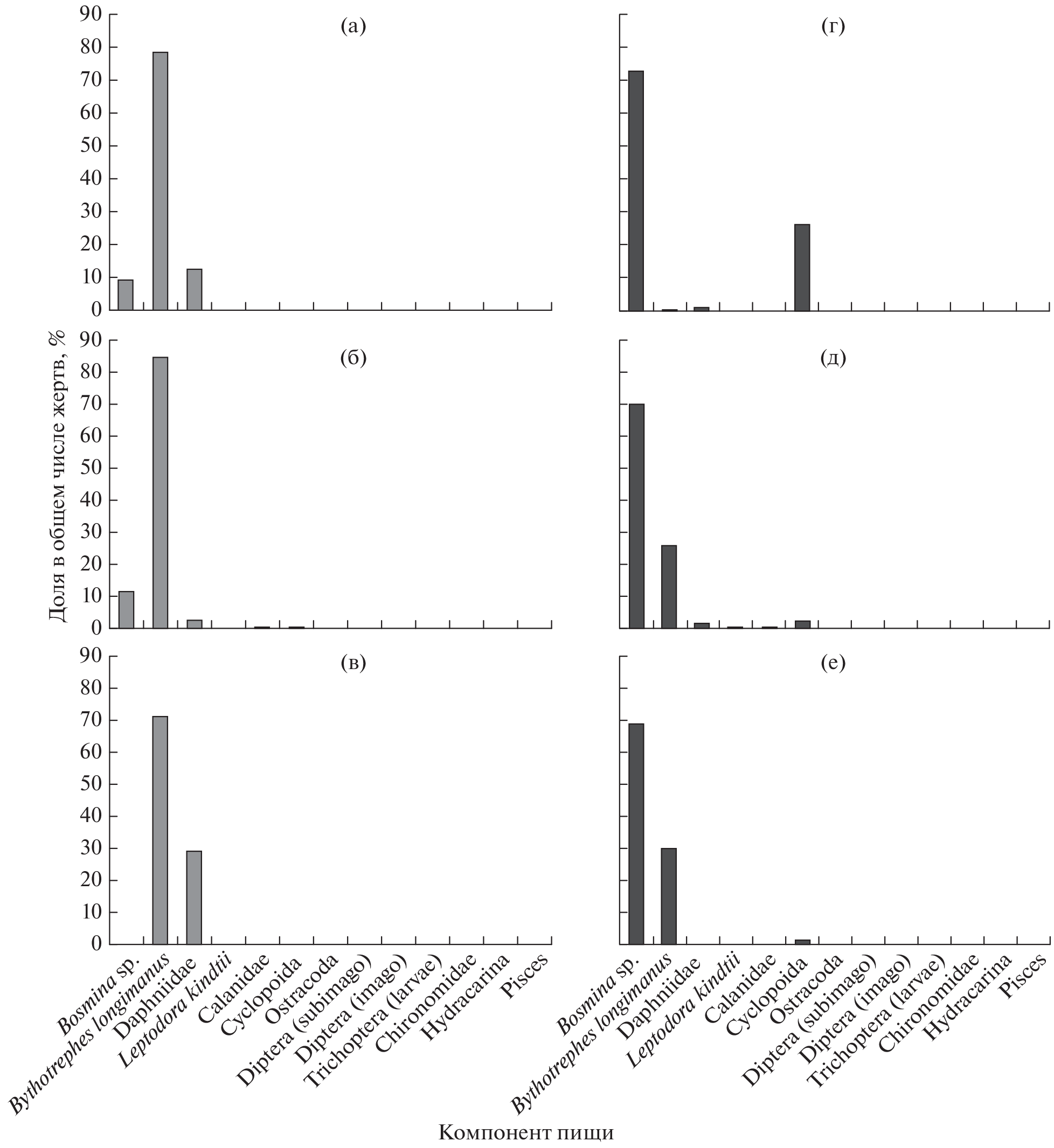 - Barbiero R.P., Tuchman B.L., Tuchman M.L. 2004. Changes in the crustacean communities of Lakes Michigan, Huron, and Erie following the invasion of the predatory cladoceran Bythotrephes longimanus // Can. J. Fish. Aquat. Sci. V. 61. № 11. P. 2111–2125. https://doi.org/10.1139/f04-149