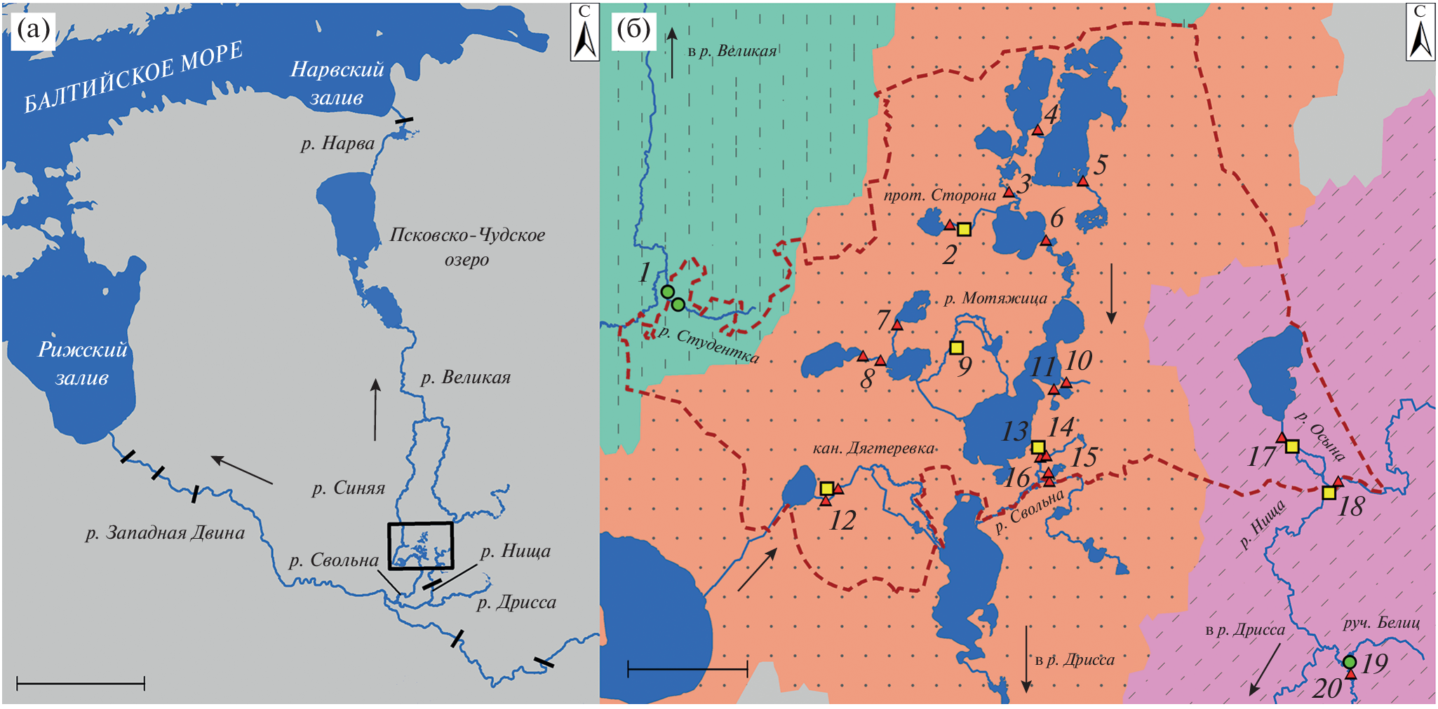 Small freshwater (resident) populations of the European river lamprey Lampetra fluviatilis from an isolated from the sea upper part of a river system with numerous lakes (the upper reaches of tributaries of the Daugava River and Lake Peipus, Pskov Oblast, Russia) have been studied. Adult individuals of the lamprey have been attributed to common and large size groups; adults are similar to other resident lamprey from the Baltic Sea basin. The presence of larvae of different size and age groups indicates regular spawning of the European river lamprey in the studied watersheds. Analysis of the modern and historical (before the isolation) distribution of lamprey revealed a reduction in habitats and a decrease in the number of individuals. Dam-associated disruption of migration routes led to the disappearance of anadromous form, and consequently, disappearance of resident lamprey from most of the studied waterbodies. We attribute the decrease in the number of rivers inhabited by lamprey and abundance of the lamprey both to anthropogenic factors (direct blocking of an access of anadromous form of the lamprey to spawning grounds by hydraulic construction) and to the characteristics of the studied area. The richness of the river system with lentic waterbodies makes it suitable for lamprey inhabitation with an influx of large anadromous individuals capable of crossing such reservoirs in search of spawning sites.