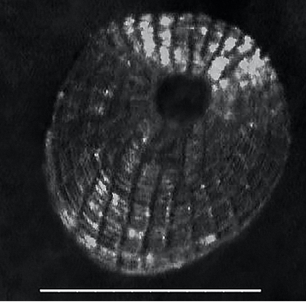 Рис. 3. Чешуя крупной самки щиповки рода Cobitis из р. Ногела, ЗММУ Р-24570 SL 89.4 мм. Масштаб здесь и на рис. 4: 1 мм.