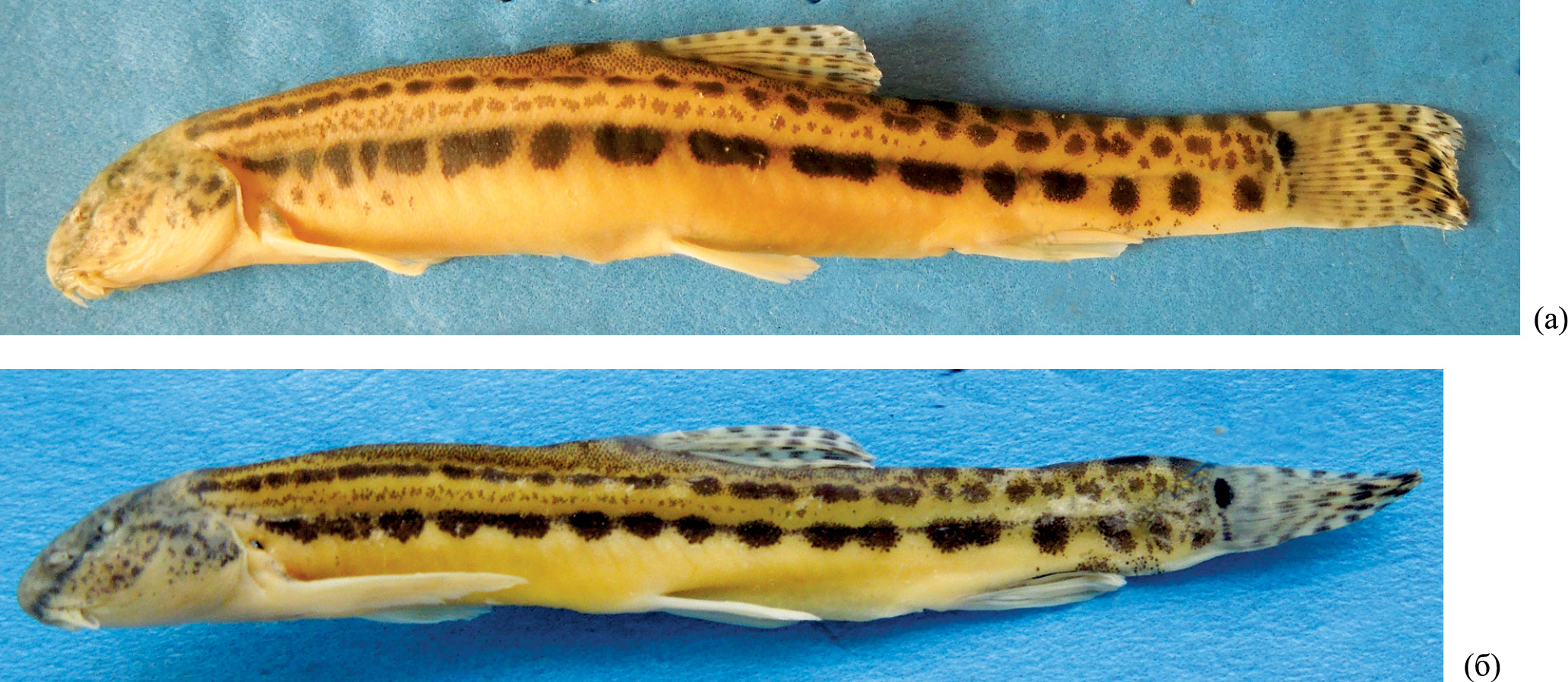 На всех музейных пробах анализировали признаки, обычно используемые для диагностики разных видов рода Cobitis: окраску (если она сохранилась), форму нижней губы, чешуи, органа Канестрини у самцов, относительную длину усиков, развитие кожистых килей на хвостовом стебле (Васильева, 1988; Mousavi-Sabet et al., 2011; Freyhof et al., 2018; Vasil’eva et al., 2020); измеряли общую (TL) и стандартную (SL) длину тела. При изучении изменчивости окраски руководствовались общей схемой Гамбетты (Gambetta, 1934), включающей четыре полосы пигментации на теле, начиная с Z1 (узкая полоса мелких пятен непосредственно под серединным дорсальным рядом крупных пятен) до Z4 (средний боковой ряд пятен). У большинства взрослых особей подсчитывали число лучей в плавниках, считая два последних причленяющихся к одному птеригиофору ветвистых луча спинного (D) и анального (A) плавников как 1½ (Kottelat, Freyhof, 2007). Аналогично считали два сближенных последних ветвистых луча (нормально развитый и недоразвитый) в парных плавниках – грудном (Р) и брюшном (V).