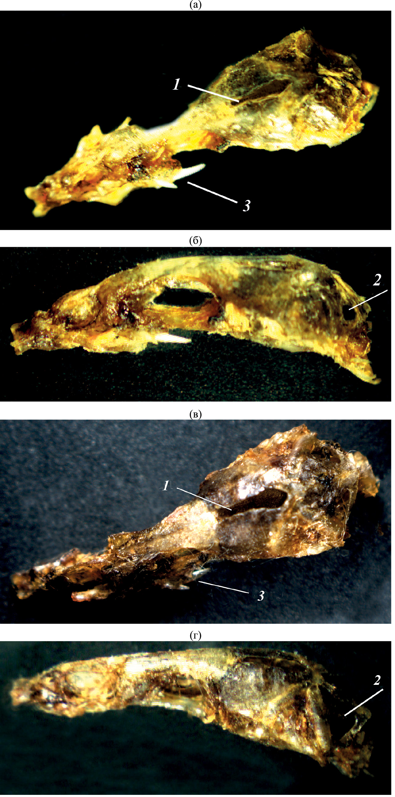 Рис. 2. Щиповки рода Cobitis из водоёмов Колхидской низменности; голова, вид снизу: а – самка SL 82.5 мм ЗММУ Р-24566, р. Сепа; б – самка SL 69.0 мм ЗММУ Р-24570, неотип Cobitis osurgeticus, р. Натанеби. Усики: 1 – ростральные, 2 – максиллярные, 3 – мандибулярные.