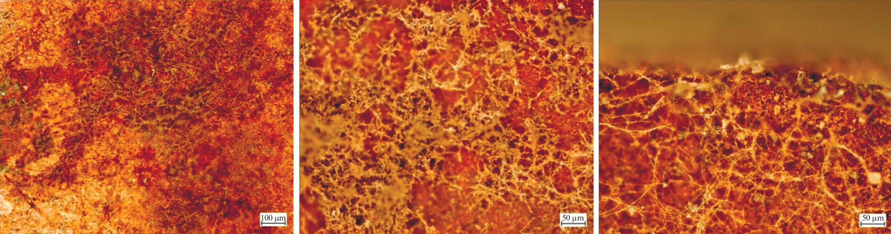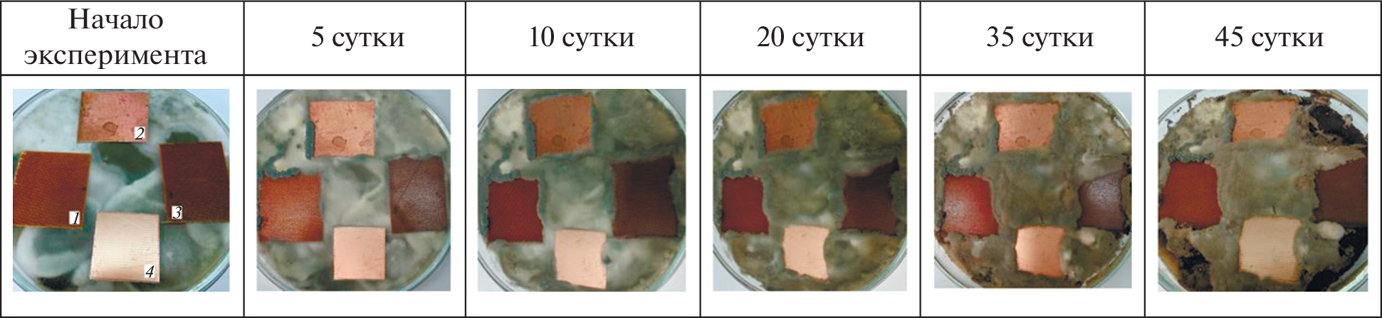Коррозионная стойкость конструкционных материалов стала одним из важнейших вопросов в электронной промышленности. В частности, биоповреждения и биокоррозия приводят к отказам при эксплуатации и большим экономическим потерям. В настоящей работе изучена биокоррозия меди и базовых материалов, применяющихся для производства печатных плат. Необратимое изменение свойств и разрушение текстолита и стеклотекстолита, используемых в составе электрорадиоизделий и контактирующих с медью, часто обусловливает нарушения работоспособности приборов и оборудования. В работе сделана попытка объяснить роль биопленок микроскопических грибов как основного фактора микологической коррозии меди в составе некоторых изделий электронной промышленности.