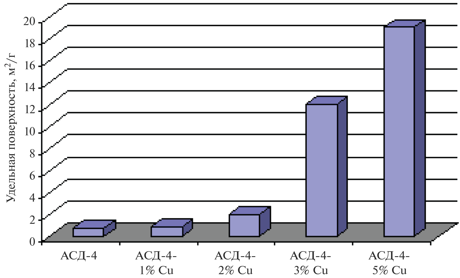 The adsorption properties of an ASD-4 aluminum powder and the powder modified with copper formate in different concentrations of 1, 2, 3, and 5 wt % were studied using the low-temperature adsorption of nitrogen at 78 K. The structural properties as morphology and phase composition of the interaction products were studied; the specific surface area and porosity were evaluated. It was shown that the adsorption characteristics of the powders modified with 1 and 2 wt % copper formate remained almost unchanged, which is of interest for creating a protective layer on the surface of the aluminum particles without significantly changing its structure-forming properties. The introduction of the modifier at a concentration of 3 and 5 wt % significantly affected the adsorption characteristics of the interaction products. For example, the specific surface of the ASD-4 + 3% Cu powder amounted to 12 m2/g, while that of the ASD-4 + 5% Cu achieved 19 m2/g, whereas the specific surface of the initial ASD-4 powder was only 0.7728 m2/g.