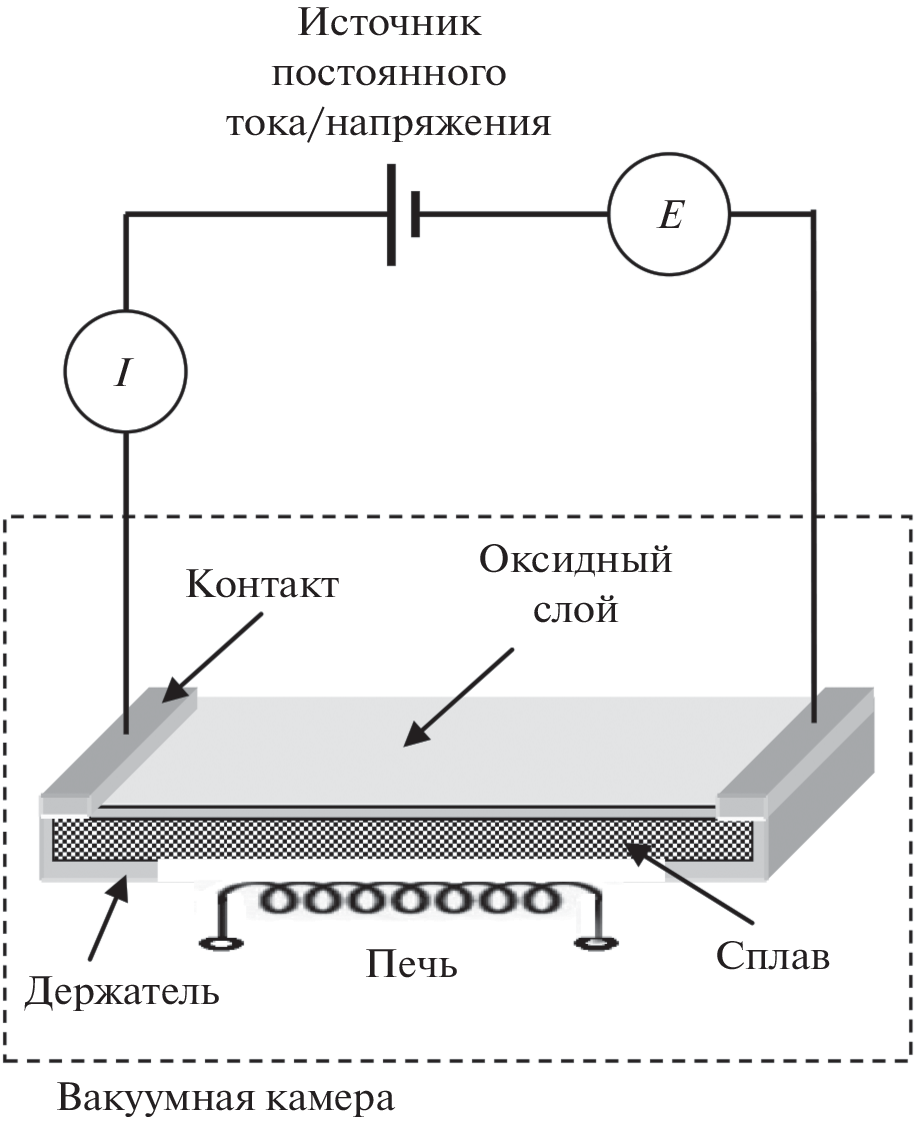 Исследовано продольное (вдоль направления тока) перераспределение химического состава и дефектной структуры неоднородных оксидных слоев при окислении пленок на основе сплава системы Fe–Cr в условиях контактного наложения на пленку окисляющегося сплава электрического тока. Зарегистрировано активирующее действие внешнего электрического тока на оксидирование сплава. Оно проявляется (по сравнению с обычным термическим оксидированием) в росте средней скорости оксидирования, в неравномерном вдоль поверхности проводника перераспределении толщины, химического состава и дефектности поверхностного оксида. При смещении от отрицательного к положительному контакту наблюдается падение концентрации кислородных вакансий, упорядочение структуры и обогащение оксидного слоя хромом. При наложении внешнего тока концентрация хрома на межфазной границе метал-оксид постоянно возобновляется, что поддерживает интеркаляцию хрома из электродиффузионной зоны сплава в структуру межфазного оксида (предположительно железо-хромистой шпинели). При достижении предельной концентрации хрома в структуре шпинели, на границе раздела металл-оксид происходит выделение полуторной окиси хрома Cr2O3 в виде индивидуальной фазы.